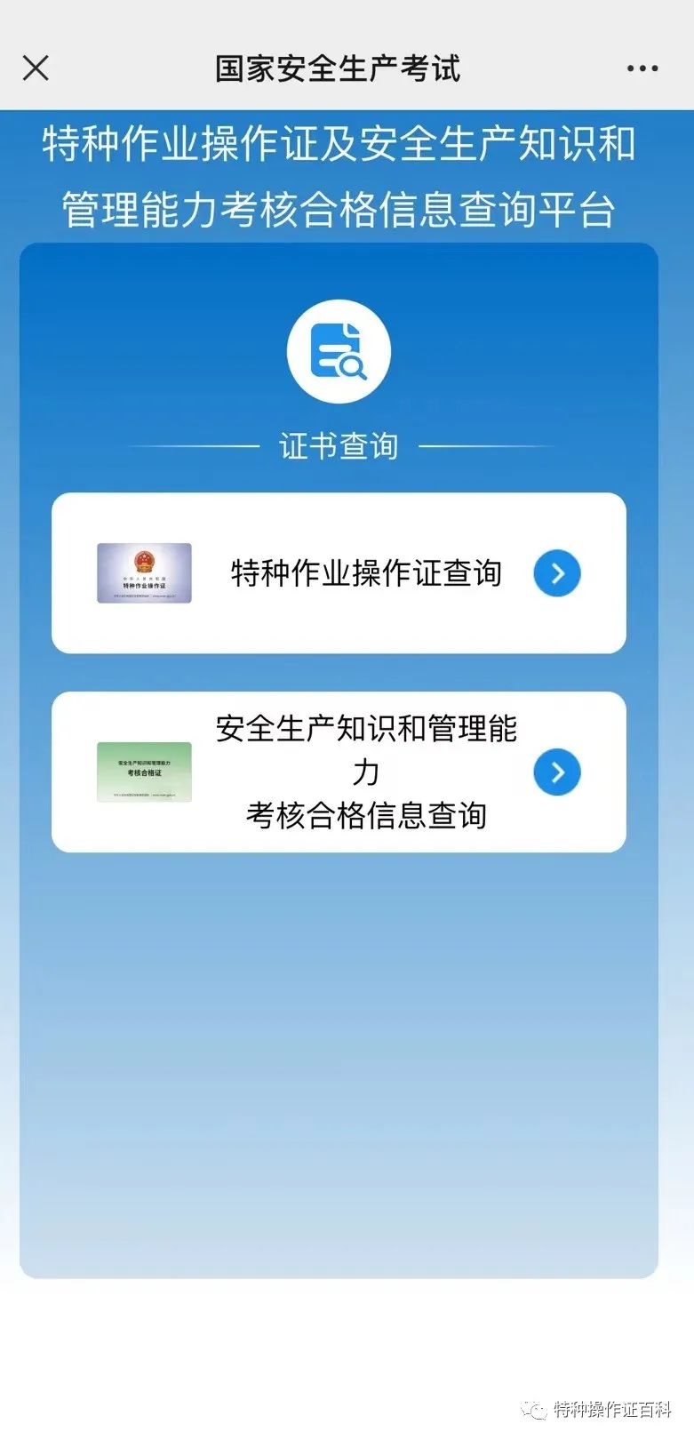 特種作業(yè)操作證由當(dāng)?shù)貞?yīng)急管理局(原安監(jiān)局)頒發(fā),證書每3年一審,6年一換。證書全國通用,網(wǎng)上統(tǒng)一查詢網(wǎng)址,請認(rèn)準(zhǔn)查詢平臺唯一官方網(wǎng)址“https://cx.mem.gov.cn”。也可通過微信公眾號搜索“國家安全生產(chǎn)考試”查詢。