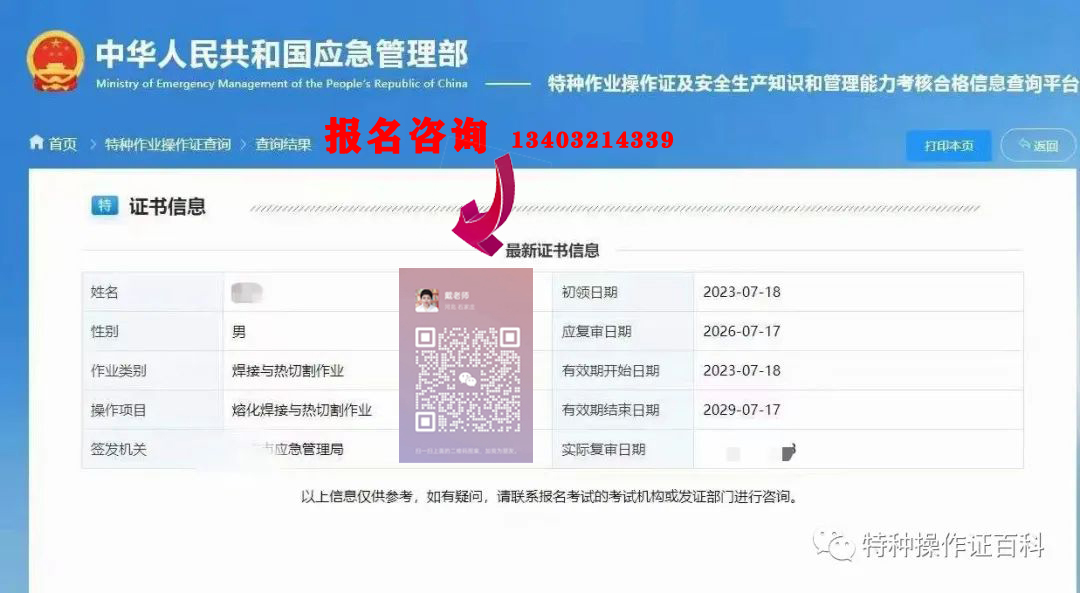 登錄應(yīng)急管理部政府網(wǎng)站(ttp://www.mem.gov.cn/),從“服務(wù)”中的‘查詢服務(wù)’進入“特種作業(yè)操作證及安全生產(chǎn)知識和管理能力考核合格信息查詢平臺”(以下簡稱“證書查詢平臺") ,使用注冊并實人認證的手機號登錄系統(tǒng),下載打印電子證書。