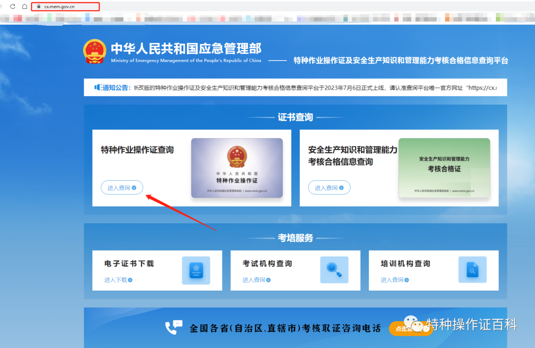 應(yīng)急管理部政府網(wǎng)站為全國(guó)特種作業(yè)人員操作證信息查詢系統(tǒng),